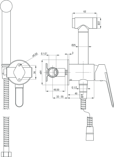 Смеситель Deante BGJ_034M Jasmin встраиваемый с гигиеническим душем, хром