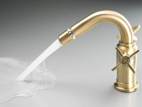Вид смесителя: двухрычажный, смешивающий. Класс расхода [л/мин]: Z - 4-9 л/мин. Акустическая группа [дБ]: I (x ? 20). Размер картриджа: 1/2''. Тип аэратора: honeycomb. Размер аэратора: M22. Соединительный шланг - длина [мм]: 450. Винт к инсталляции: 3/8''. Винт кронштейна: M10. Дизайн, объединяющий прошлое с будущим. Элементы ручной работы. Инновационное долговечное покрытие цвета латуни. Соединительные шланги 45 см в комплекте. Смеситель оборудован струйным аэратором. Корпус смесителя изготовлен из латуни высочайшего качества. Класс расхода Z (4-9 л/мин) позволяет снизить употребление воды. Монтажная втулка облегчает установку смесителя. Рекомендуется приобрести универсальную заглушку в цвет смесителя.