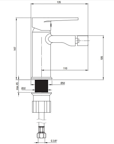 Смеситель Deante BUT_030M Tubo для биде без донного клапана, хром