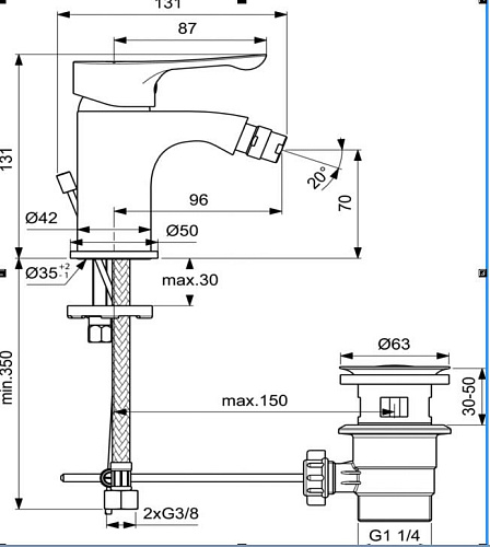 Смеситель Ideal Standard BC324AA Dot 2.0 для биде, Chrome (хром)