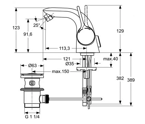 Смеситель Ideal Standard A4268AA Melange для биде однорукоятковый, Chrome (хром)