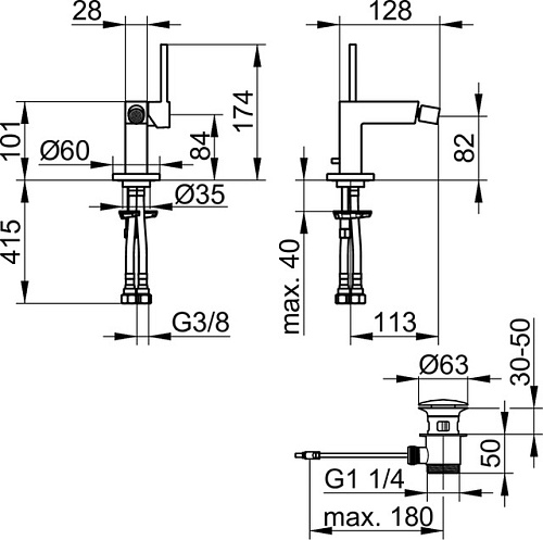 Оснащение Гарнитура для слива, донный клапан 1.1/4", система быстрого монтажа, на шарнире, аэратор Cache TJ M 18,5x1, гибкая подводка 435 мм G3/8 дюйма, поток воды ограничен 7,6 л/мин.