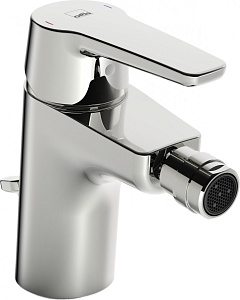 Смеситель для биде с подвижным аэратором и донным клапаном. Встроенная опция ограничения расхода и температуры воды. Расход воды 6.0 л/мин. F= с гибкой подводкой