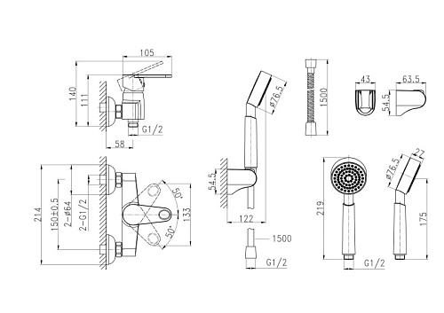 Оснащение смеситель, декоративные накладки, S-образные эксцентрики, душевая лейка, шланг, держатель лейки, гарантийный талон, инструкция по эксплуатации