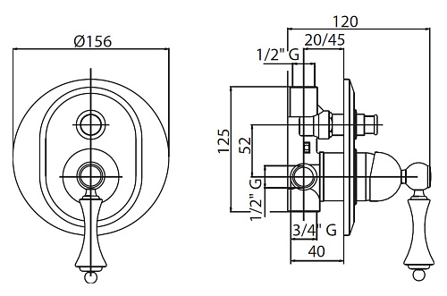 Встраиваемый однорычажный смесительдля душа с переключателем