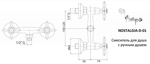 Смеситель Cezares NOSTALGIA-DS-01 для душа, хром
