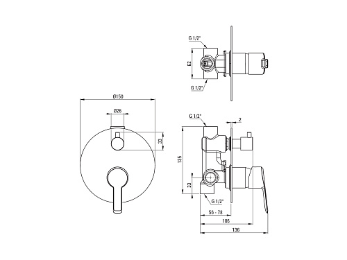 Смеситель Deante BQA_D44P Arnika для душа встраиваемый, на 2 положения, с внутренней частью, Titanium (титан)