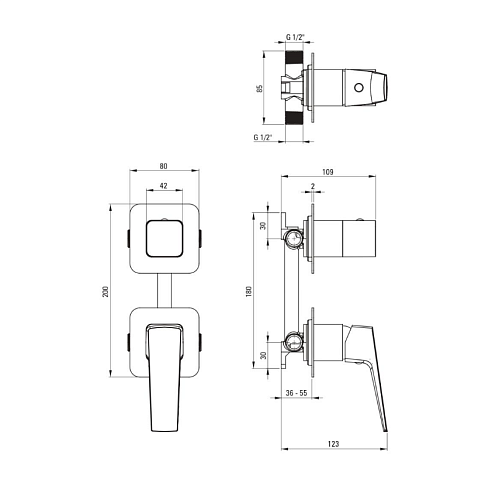 Смеситель Deante BQL_N44P Blur для душа встраиваемый, на 2 выхода, с внутренней частью, Nero (черный) купить по доступной цене
