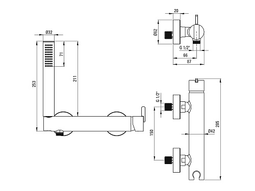 Смеситель Deante BQS_F41M Silia для душа с душевым гарнитуром, сталь