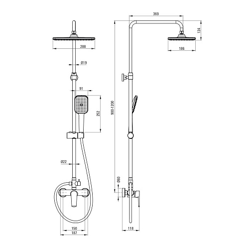 Оснащение Смеситель, лейка, шланг, штанга для душа, верхний душ.