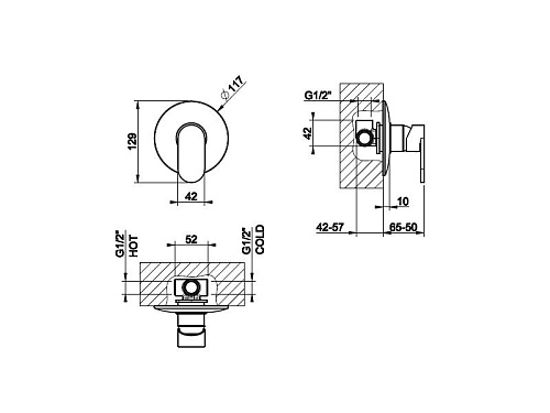 Смеситель для душа 35954-031 GESSI BAGUTTA, цвет хром, внешняя часть для встраиваемого смесителя (38658-031) приобретается отдельно.