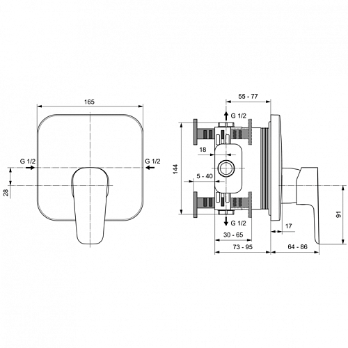 Смеситель Ideal Standard A6114AA Ceraplan III для душа (внешняя часть), комплект №2, Chrome (хром)