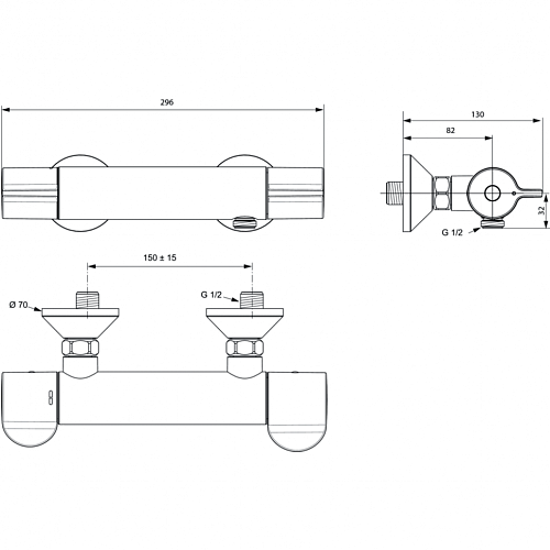Смеситель Ideal Standard A6872AA Ceraplus 2.0 для душа, Chrome (хром)