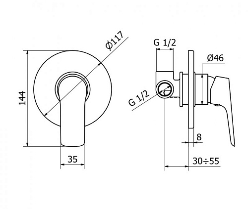 Смеситель для душа, встраиваемый Cezares Bitone BITONE-DIM-01
