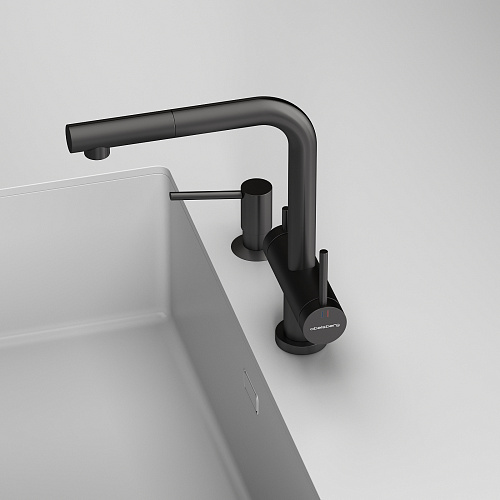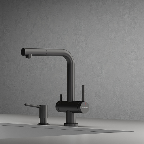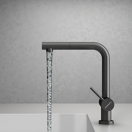 Смеситель для кухни ABELSBERG Pura c вытяжным изливом и возможностью подключения фильтра для воды, цвет космическая сталь, PVD покрытие, арт. OTF70709GM