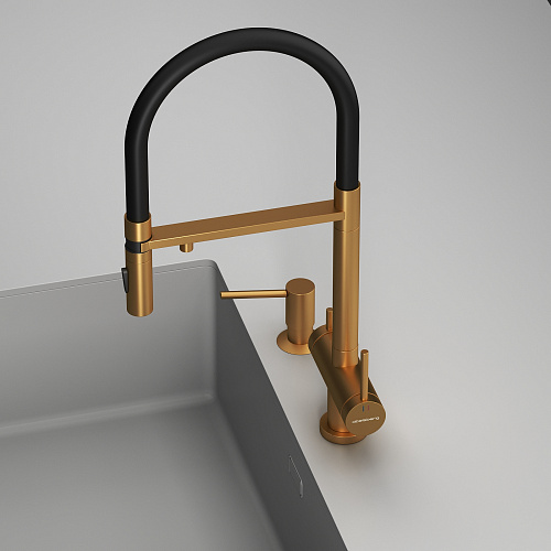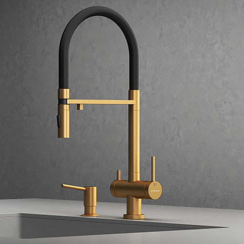 Смеситель для кухни ABELSBERG Venta c гибким изливом и возможностью подключения фильтра для воды, цвет королевское золото, PVD покрытие, арт. IXF73979BG