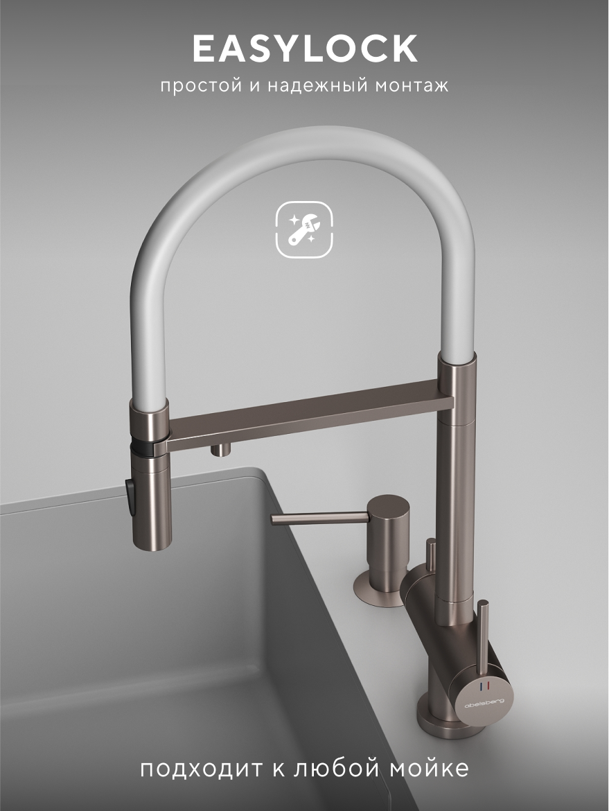 Abelsberg Venta — это свобода не только действий, но и дизайна на кухне. Смелые, динамичные формы, выразительная геометрия и актуальные цветовые решения превращают смеситель в яркий акцент современного интерьера. Гибкий излив, однорычажное управление и встроенный канал для питьевой воды собраны в технологичном и цельном силуэте, где каждая деталь работает на точность и выразительность. Смеситель Abelsberg Venta — это не просто функциональный элемент, а часть архитектуры пространства, отражающая ваш вкус и индивидуальность.