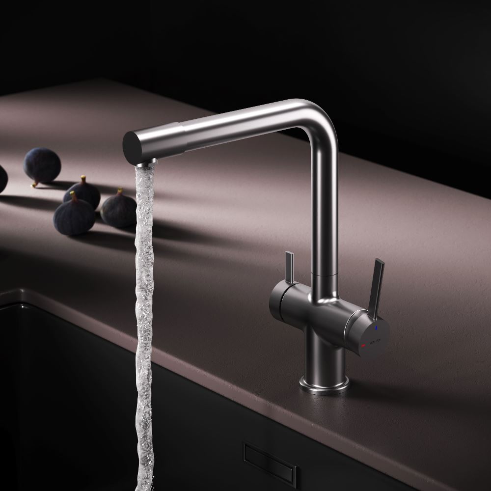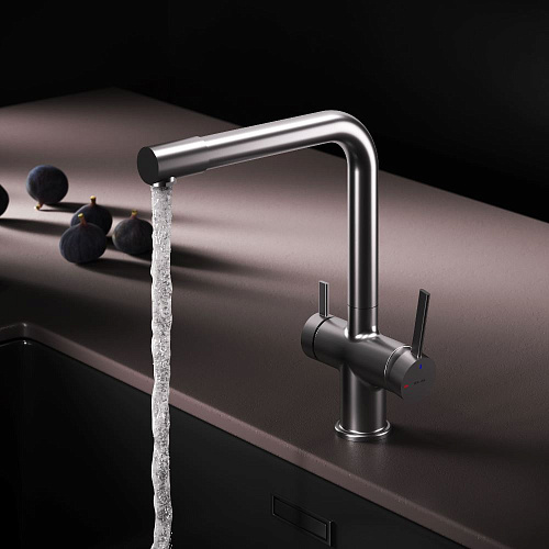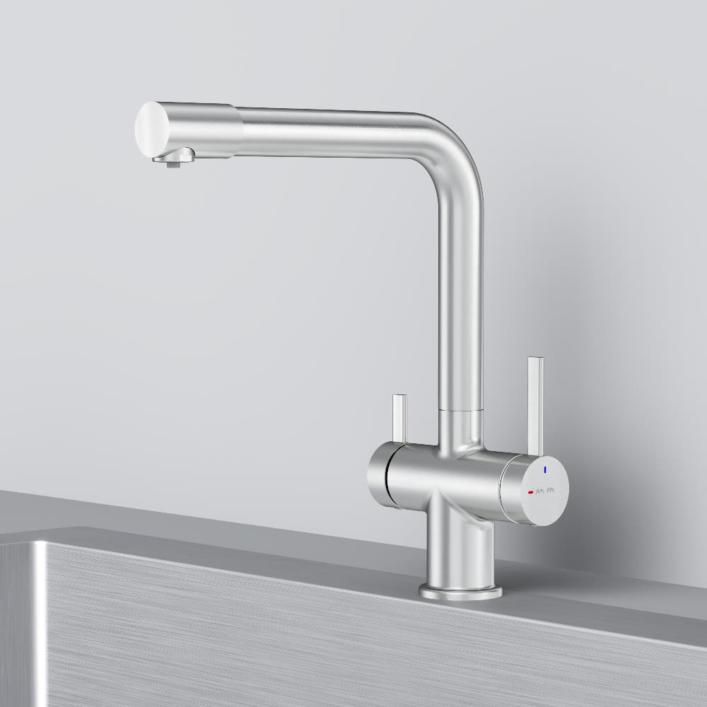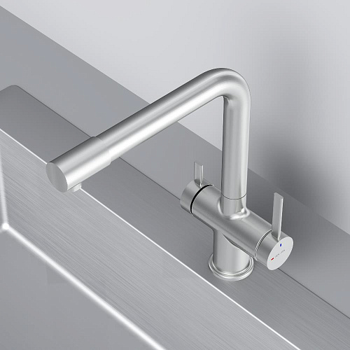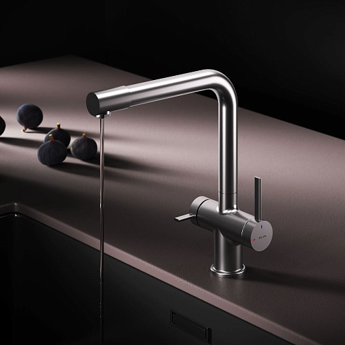 Встречайте долгожданное пополнение нашумевшей коллекции Func — кухонные смесители с оригинальными «фишками» характерными для всей коллекции. Дизайн характерный только для премиум-сегмента благодаря собственным дизайнерам бренда теперь представлен и в более доступной ценовой категории. Смеситель оснащён встроенным каналом для подачи питьевой воды. Чтобы получить питьевую воду воспользуйтесь ручкой расположенной с левой стороны корпуса для обычной воды управляйте смесителем привычным образом. Функция EcoStart — стильное и экологичное решение для вашего дома. При включении смесителя в центральном положении автоматически потечёт холодная вода. Для подачи горячей воды ручку нужно повернуть влево поворот вправо заблокирован. Оптимизация диапазона движения ручки смесителя позволяет сократить нерациональный расход воды до 40% в месяц. Дополнительным преимуществом функции EcoStart является возможность установить смеситель вплотную к стене что особенно важно в условии небольших кухонных пространств. Уникальная ручка в форме тонкого стика позволяет с легкостью управлять смесителем превращая повседневные задачи в настоящее удовольствие. Эксклюзивное покрытие Everlast вдвое превышает отраслевые стандарты по прочности и износостойкости. Ювелирный блеск и долговечность покрытия достигаются по стандарту Chrome Plating Standard NSS 80H. ""
