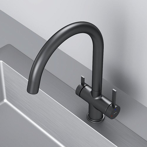 Встречайте долгожданное пополнение нашумевшей коллекции Func — кухонные смесители с оригинальными «фишками» характерными для всей коллекции. Дизайн характерный только для премиум-сегмента благодаря собственным дизайнерам бренда теперь представлен и в более доступной ценовой категории. Смеситель оснащён встроенным каналом для подачи питьевой воды. Чтобы получить питьевую воду воспользуйтесь ручкой расположенной с левой стороны корпуса для обычной воды управляйте смесителем привычным образом. Функция EcoStart — стильное и экологичное решение для вашего дома. При включении смесителя в центральном положении автоматически потечёт холодная вода. Для подачи горячей воды ручку нужно повернуть влево поворот вправо заблокирован. Оптимизация диапазона движения ручки смесителя позволяет сократить нерациональный расход воды до 40% в месяц. Дополнительным преимуществом функции EcoStart является возможность установить смеситель вплотную к стене что особенно важно в условии небольших кухонных пространств. Уникальная ручка в форме тонкого стика позволяет с легкостью управлять смесителем превращая повседневные задачи в настоящее удовольствие. ""
