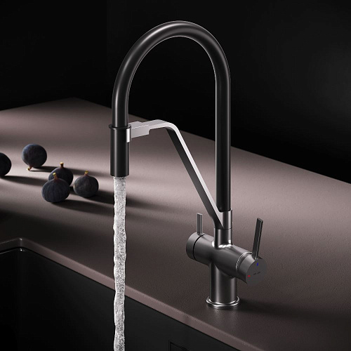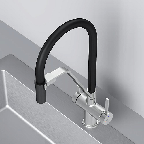 Встречайте долгожданное пополнение нашумевшей коллекции Func — кухонные смесители с оригинальными «фишками» характерными для всей коллекции. Дизайн характерный только для премиум-сегмента благодаря собственным дизайнерам бренда теперь представлен и в более доступной ценовой категории. Смеситель оснащён встроенным каналом для подачи питьевой воды. Чтобы получить питьевую воду воспользуйтесь ручкой расположенной с левой стороны корпуса для обычной воды управляйте смесителем привычным образом. Гибкий излив смесителя позволяет справляться с любыми задачами и превращает его в по-настоящему профессиональный инструмент на вашей кухне. Функция EcoStart — стильное и экологичное решение для вашего дома. При включении смесителя в центральном положении автоматически потечёт холодная вода. Для подачи горячей воды ручку нужно повернуть влево поворот вправо заблокирован. Оптимизация диапазона движения ручки смесителя позволяет сократить нерациональный расход воды до 40% в месяц. Дополнительным преимуществом функции EcoStart является возможность установить смеситель вплотную к стене что особенно важно в условии небольших кухонных пространств. Уникальная ручка в форме тонкого стика позволяет с легкостью управлять смесителем превращая повседневные задачи в настоящее удовольствие. Эксклюзивное покрытие Everlast вдвое превышает отраслевые стандарты по прочности и износостойкости. Ювелирный блеск и долговечность покрытия достигаются по стандарту Chrome Plating Standard NSS 80H. ""