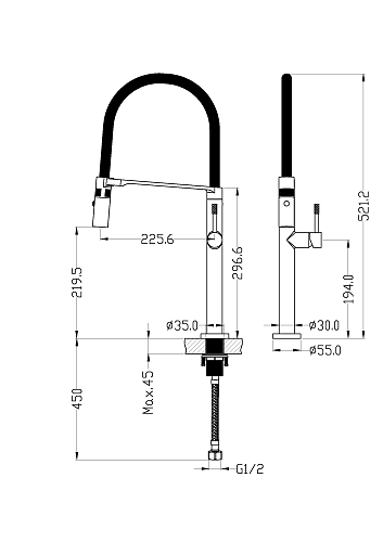 Высота излива 22