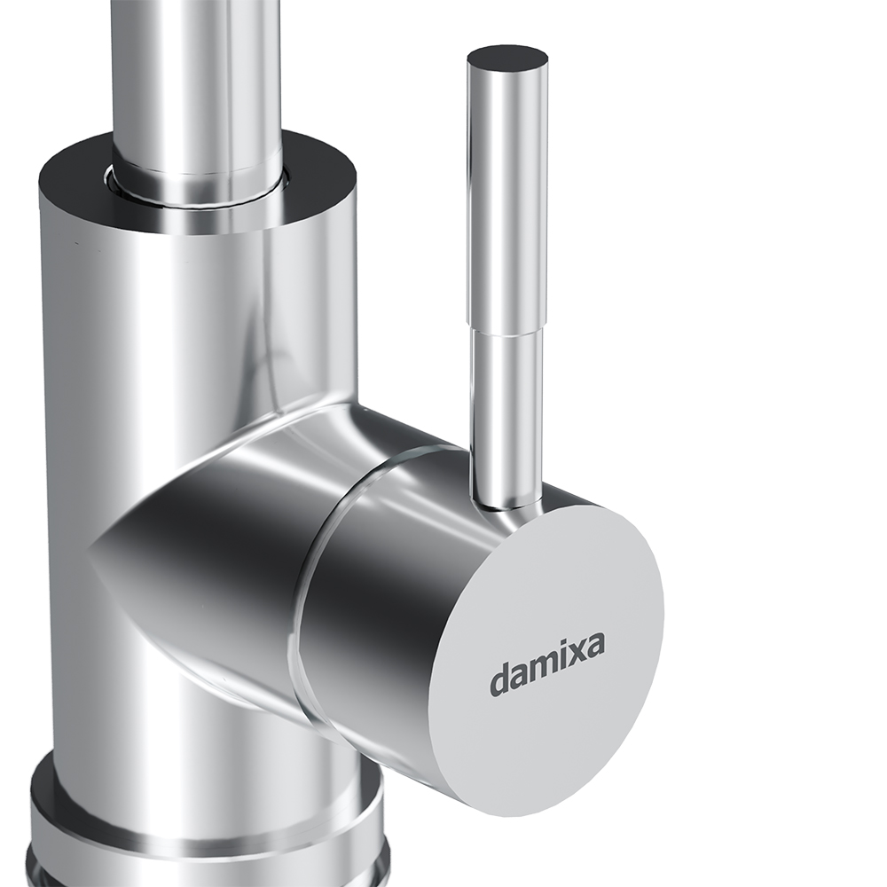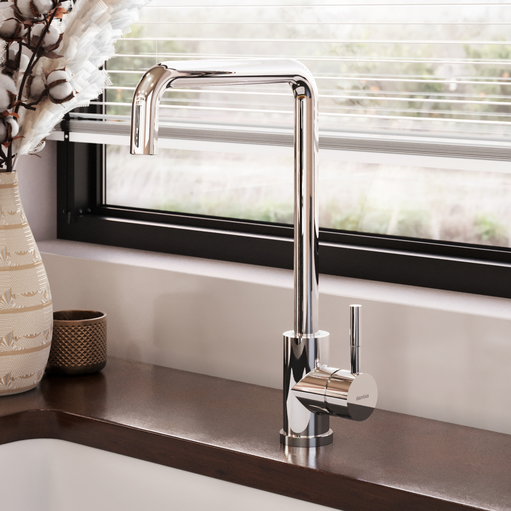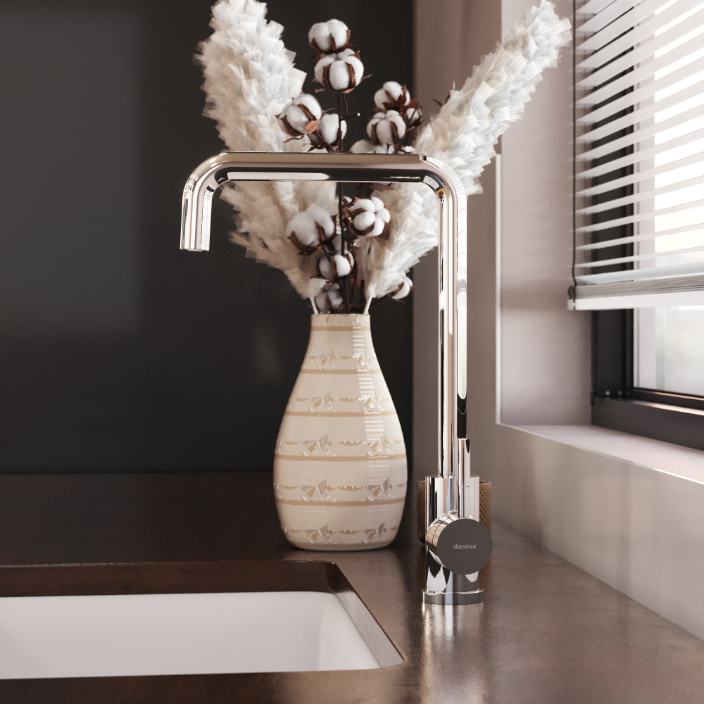 Кухонный смеситель Damixa коллекции Merkur со встроенным каналом для питьевой воды успешно совмещает в себе две функции. Благодаря прогрессивной технологии при вращении ручки на 90 градусов вы можете наслаждаться чистой водой из фильтра. Если же Вам нужна обычная вода смеситель управляется привычным способом. Также конструкция совмещающая в себе 2 в 1 экономит место и придаёт кухне опрятный вид без лишних элементов. ""