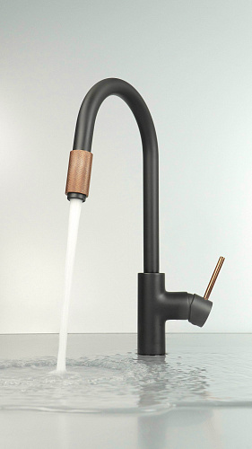 Смеситель Deante BCA_B64M Aster для кухни с подключением для фильтра воды, черный/медь