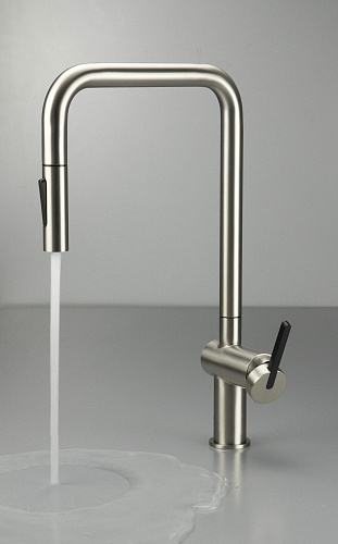 Смеситель Deante BKM_F73N Momi для кухни с выдвижным U-изливом, брашированная сталь
