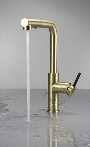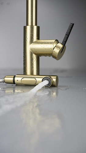 Смеситель Deante BKM_R73M Momi для кухни с выдвижным Г-изливом, брашированное золото