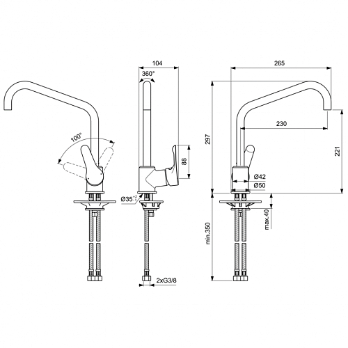 ALPHA Однорычажный смеситель для кухонной мойки.