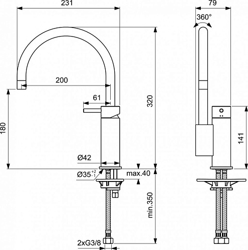 Смеситель Ideal Standard A9020AA Mara для кухонной мойки, Chrome (хром)