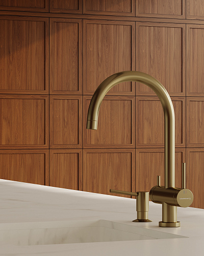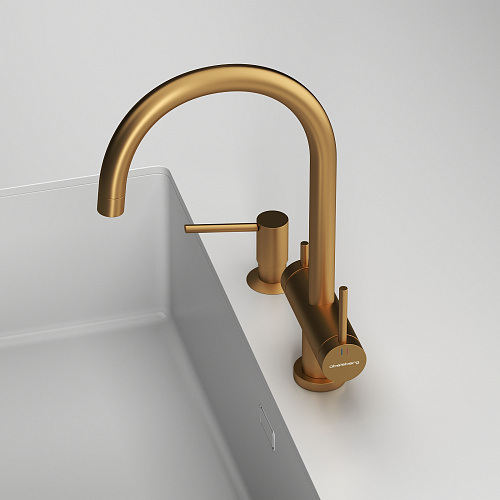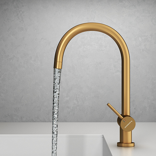 Смеситель для кухни ABELSBERG Aera с возможностью подключения фильтра для воды, цвет королевское золото, PVD покрытие, арт. AWF70029BG
