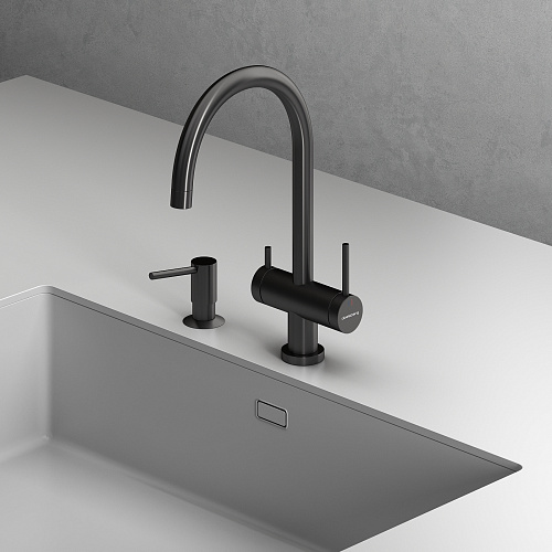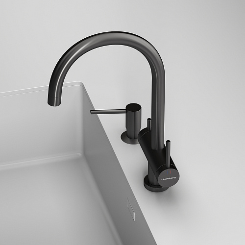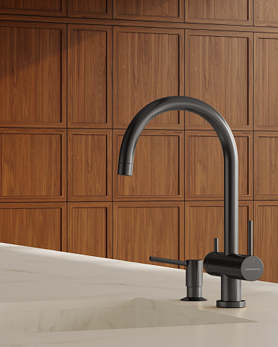 Смеситель для кухни ABELSBERG Aera с возможностью подключения фильтра для воды, цвет космическая сталь, PVD покрытие, арт. AWF70029GM