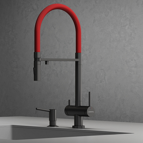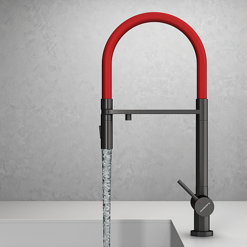 Смеситель для кухни ABELSBERG Venta c гибким изливом и возможностью подключения фильтра для воды, цвет космическая сталь, PVD покрытие, арт. IXF73979GM