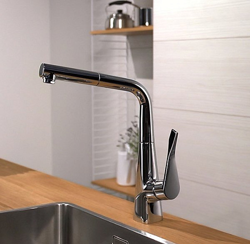Смеситель Hansgrohe 14821000 Metris 320 для кухни, с выдвижным душем, хром
