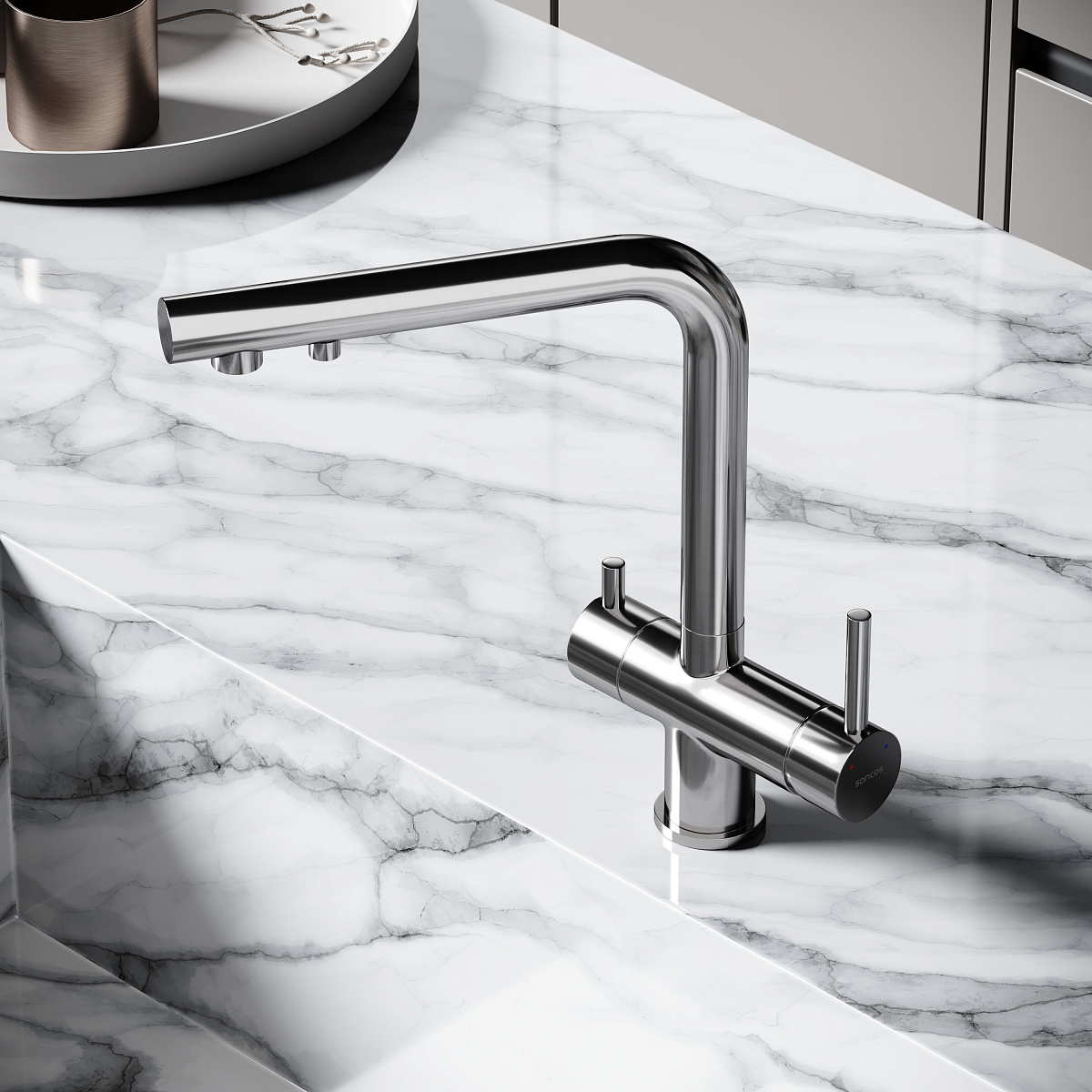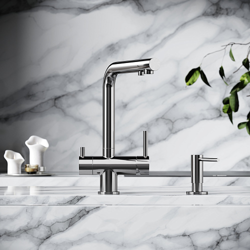 Поворотный металлический излив- возможность поворота на 360 ° Съемный аэратор для проведения очистки Керамический картридж SEDAL - плавная регулировка температуры и потока Отдельный кран для управления фильтрованной водой Излив для фильтрованной воды интегрирован в основной излив Стойкое покрытие методом элетроплейтинга