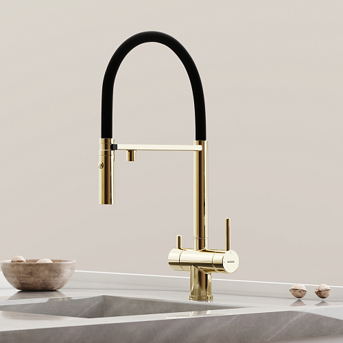 Гибкий излив из силикона Магнитный держатель излива Излив для фильтрованной воды интегрирован в держатель основного излива Вращение излива на 360° 2 режима потока воды (душ и стандартная струя) Картридж 35 мм, Sedal (Испания) Пластиковый аэратор — смягчает воду и предотвращает разбрызгивание Функция «Холодный старт» — экономия горячей воды и энергии В комплекте: смеситель, комплект для подключения к фильтру, подводка для воды, монтажный комплект