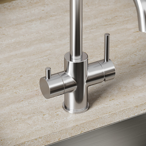Поворотный металлический излив- возможность поворота на 360 ° Съемный аэратор для проведения очистки Керамический картридж SEDAL - плавная регулировка температуры и потока Отдельный кран для управления фильтрованной водой Излив для фильтрованной воды интегрирован в основной излив Стойкое покрытие методом элетроплейтинга