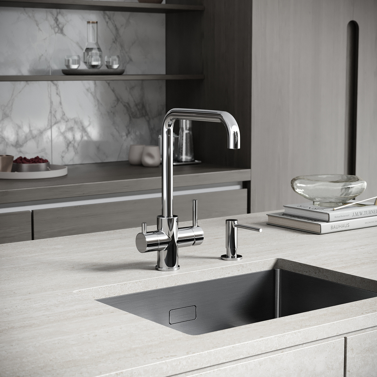 Поворотный металлический излив- возможность поворота на 360 ° Съемный аэратор для проведения очистки Керамический картридж SEDAL - плавная регулировка температуры и потока Отдельный кран для управления фильтрованной водой Излив для фильтрованной воды интегрирован в основной излив Стойкое покрытие методом элетроплейтинга