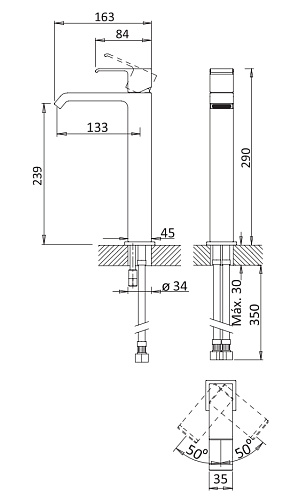 Смеситель для накладной раковины Cezares Porta PORTA-LC-SR