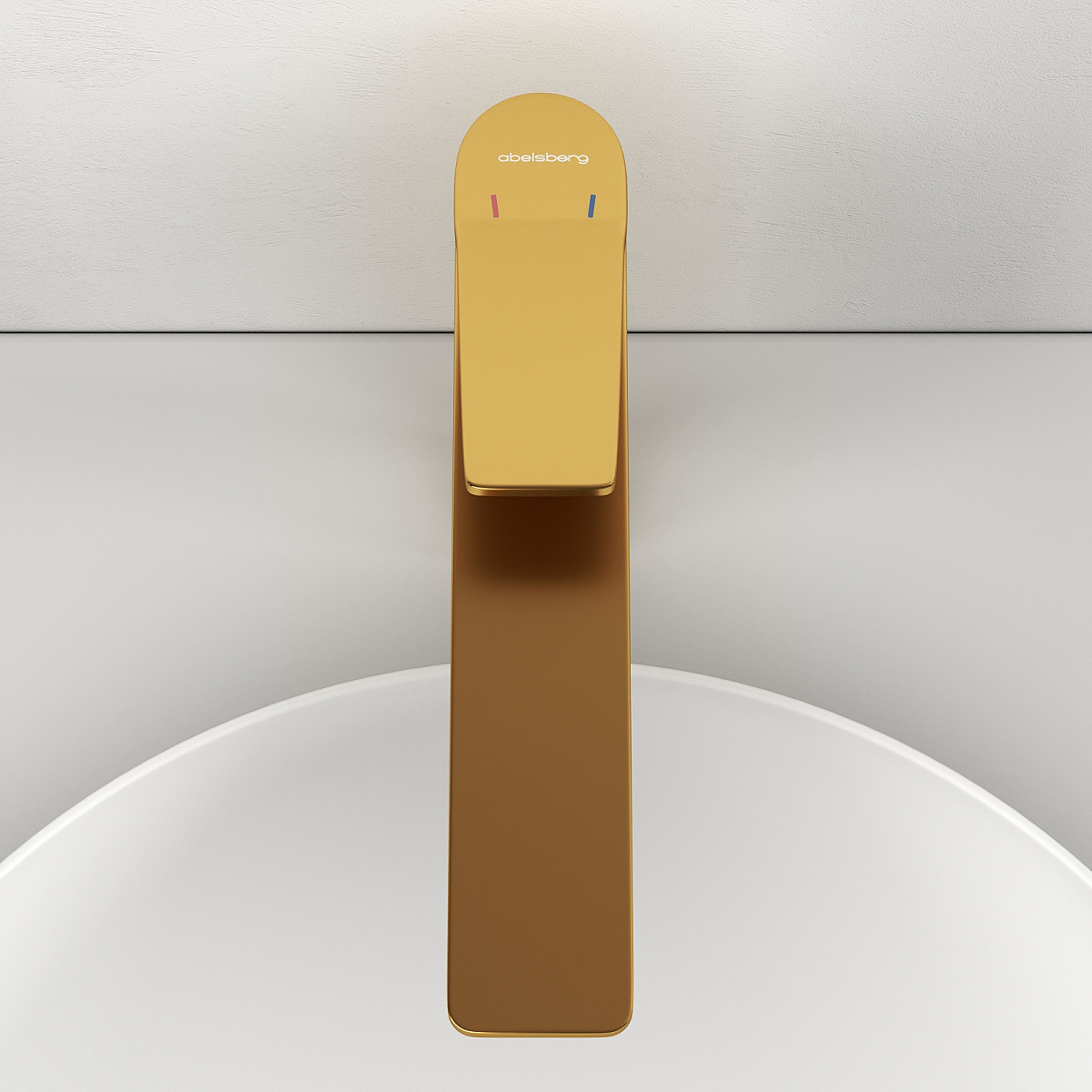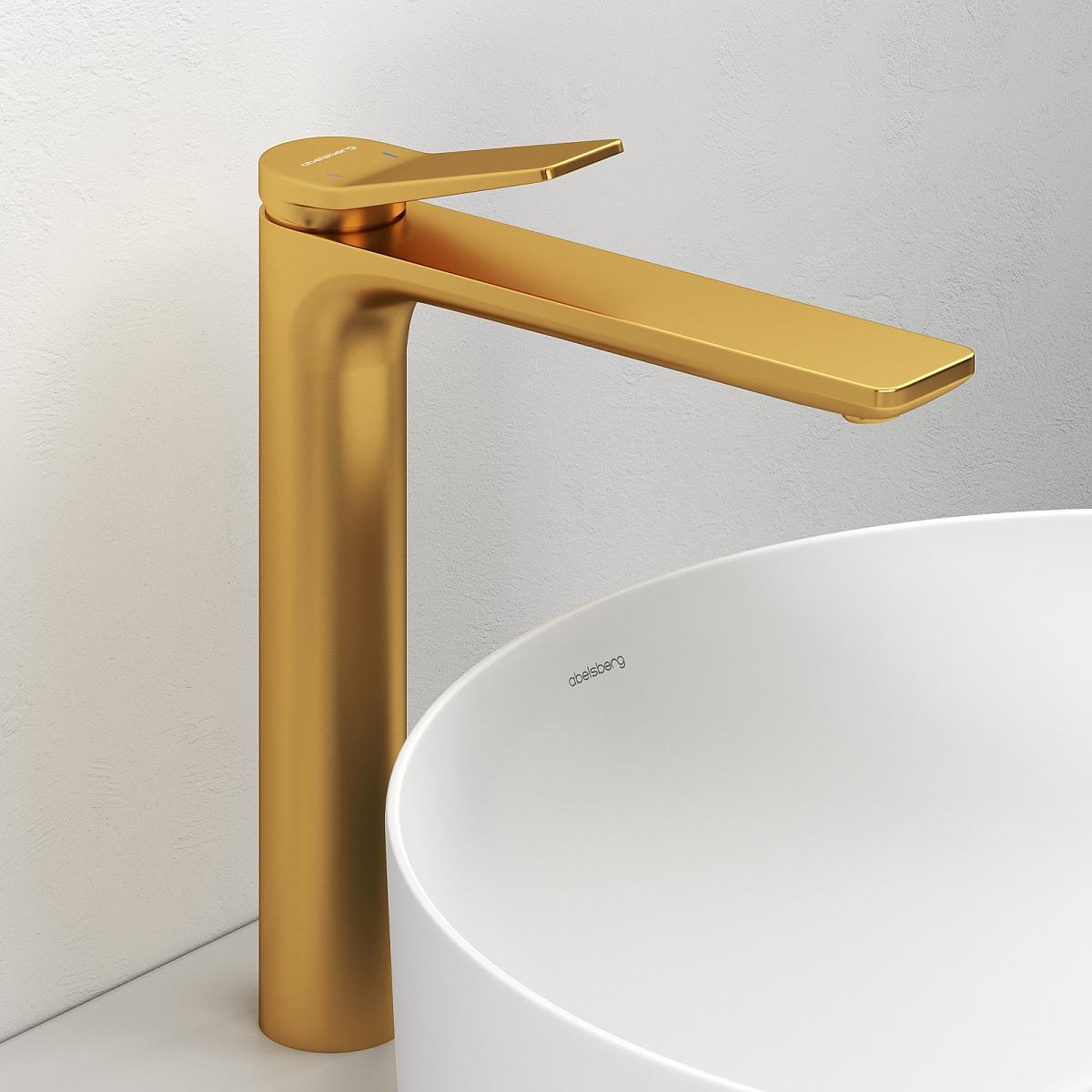 Смеситель Abelsberg Intensa в высокой версии — это мощная визуальная доминанта и функциональный акцент в ванной комнате. Вытянутый корпус с характерными изгибами и выразительной геометрией подчёркивает индивидуальность интерьера, особенно в сочетании с раковинами-чашами. Смеситель легко справляется с ролью центрального элемента, при этом оставаясь удобным в использовании. Продуманные пропорции и плавные переходы форм создают ощущение динамики и архитектурной цельности.