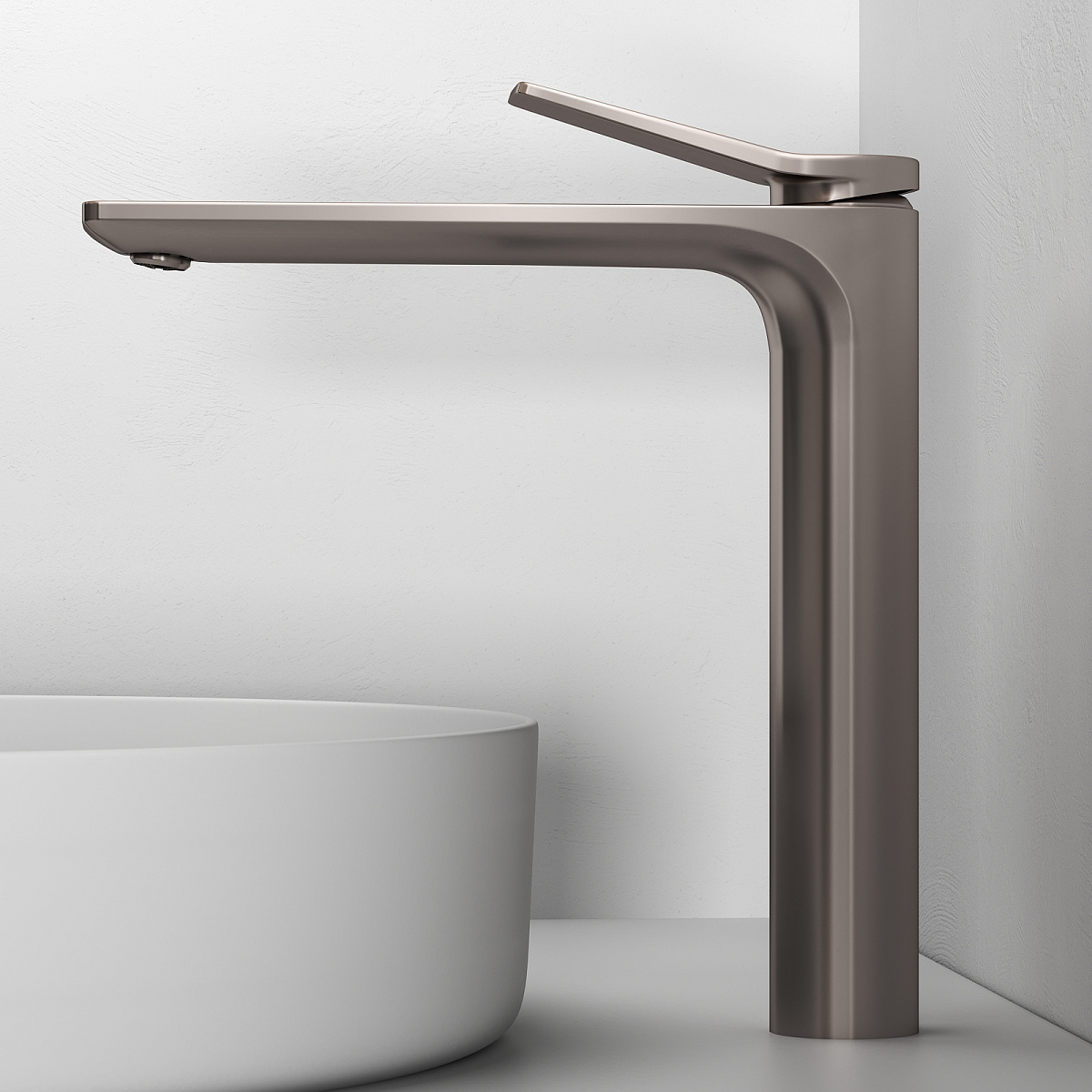 Смеситель Abelsberg Intensa в высокой версии — это мощная визуальная доминанта и функциональный акцент в ванной комнате. Вытянутый корпус с характерными изгибами и выразительной геометрией подчёркивает индивидуальность интерьера, особенно в сочетании с раковинами-чашами. Смеситель легко справляется с ролью центрального элемента, при этом оставаясь удобным в использовании. Продуманные пропорции и плавные переходы форм создают ощущение динамики и архитектурной цельности.