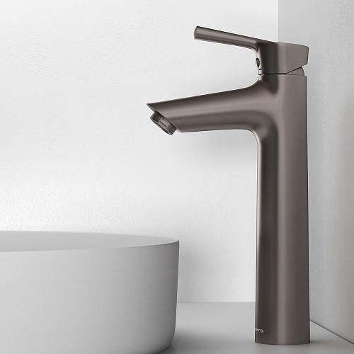 Смеситель Abelsberg Solida в высокой версии подчёркивает архитектурную выразительность коллекции. Удлинённый корпус и чёткая геометрия создают ощущение монументальности — идеальный выбор для ванных с раковинами-чашами и современными интерьерными решениями. Этот смеситель сочетает визуальную устойчивость с функциональной гибкостью. Продуманные пропорции, акцент на вертикали и строгий силуэт делают его не просто элементом сантехники, а архитектурным штрихом, задающим стиль.