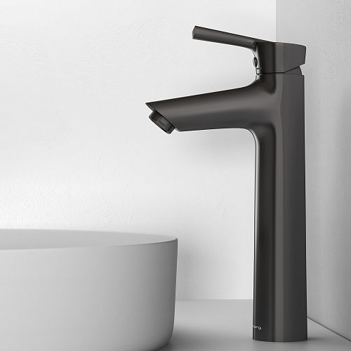 Смеситель Abelsberg Solida в высокой версии подчёркивает архитектурную выразительность коллекции. Удлинённый корпус и чёткая геометрия создают ощущение монументальности — идеальный выбор для ванных с раковинами-чашами и современными интерьерными решениями. Этот смеситель сочетает визуальную устойчивость с функциональной гибкостью. Продуманные пропорции, акцент на вертикали и строгий силуэт делают его не просто элементом сантехники, а архитектурным штрихом, задающим стиль.