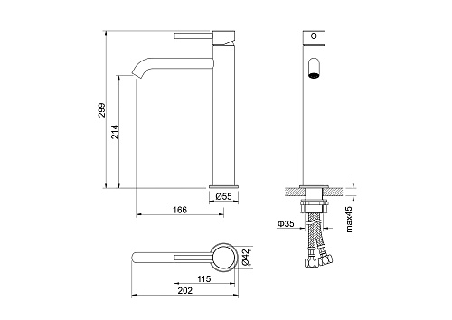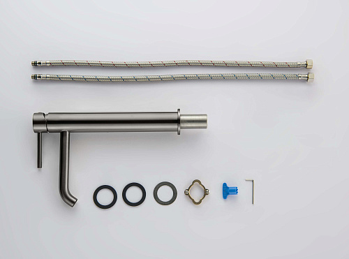 Оснащение 1. Смеситель 2. Гибкая подводка 60см 3. Монтажный комплект 4. Слив-перелив и донный клапан в комплект не входят