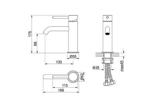 Оснащение 1. Смеситель 2. Гибкая подводка 60см 3. Монтажный комплект 4. Слив-перелив и донный клапан в комплект не входят