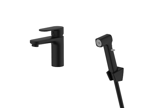 Оснащение 1. Смеситель 2. Гибкая подводка 60см 3. Шланг для лейки 150 см 4. Гигиеническая лейка, оснащена нажимным механизмом для остановки потока воды 5. Настенный держатель для гигиенической лейки 6. Монтажный комплект