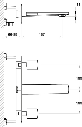 Управление: вентильное Материал: латунь Исполнение: хром Длина излива: 16,7 см Механизм: керамическая кранбукса Отверстия для монтажа: 2 отверстия Тип подводки: скрытый (внутренний) монтаж 1/2" Оснащение: без донного клапана, аэратор Рабочий интервал давления в водопроводной сети: 0,5-6,0 Атм