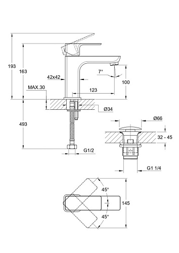 Оснащение смеситель, донный клапан (PVC),декоративные накладки, S-образные эксцентрики, гарантийный талон, инструкция по эксплуатации