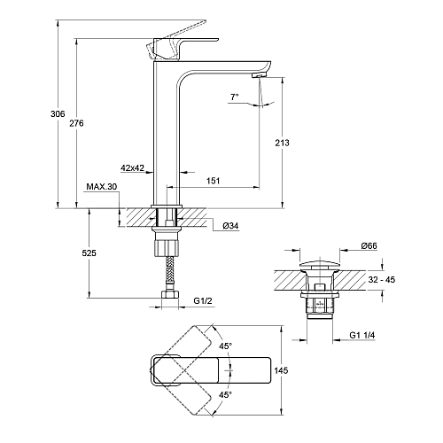 Высота излива 21,3